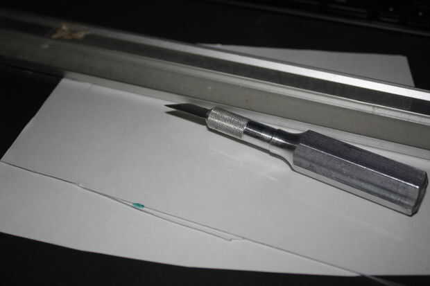 Obtener un borde recto y marcar el plexi. Ahora presionar por ser firmes pero no brutal. Si no se encaja anotarlo un poco más y vuelva a intentarlo. No queremos romper nuestra línea.