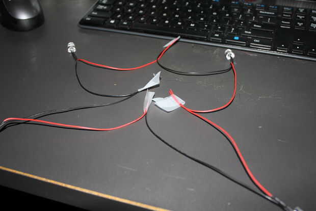 Cable el LED juntos este camino. (otra vez solamente si haces exactamente lo que yo he por favor compruebe su LED requisitos de alimentación y compruebe el suministro de energía con un multímetro para asegurarse de que). Desafortunadamente la mayoría de estas fotos vinieron después tuve cosas cableado y realiza algunos grabados juntos y tomó una foto para que vieran lo que quise decir. Yo obviamente no conéctelos juntos como lo fue mostrar las conexiones no elctronico.