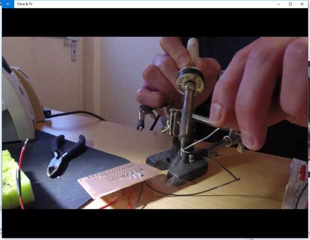 Después de algunos prototipos fácil (y aún soy muy nuevo en programación y esas cosas) he utilizado el original "Fade" demo dibujo proporcionado por el IDE de Arduino y agregado un segundo LED al código, de modo que ambos LED se desvanecerá de la misma manera. Creo que hay diferentes maneras de hacer esto, pero funciona para mí. Puesto que la prueba fue bien, yo soldado a todo un perboard para hacer más duradera.
