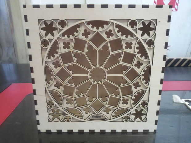 Nada mucho en términos de fabricación, los tableros contrachapados son corte del laser. Yo he grabado un mensaje personal a mi amigo en el panel superior de la caja. Grabado puede causar carbonización de la madera que rodea el patrón grabado. Una forma posible de reducir esto es poner una cinta adhesiva sobre la zona a ser grabado. Sin embargo me salté este paso para este proyecto. Probablemente se trate esto para algunos otros proyectos próximos.