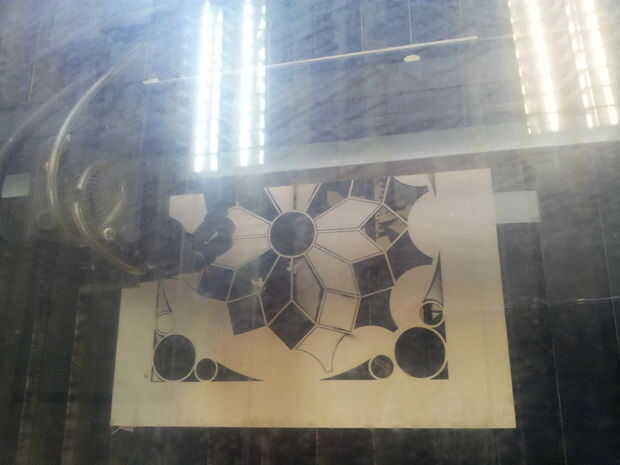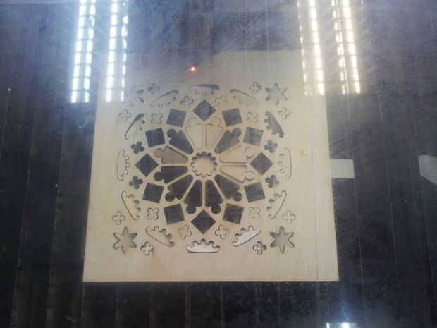 Para procesamiento posterior, utiliza un cepillo de cerdas finas humedecido con agua y jabón suave para pasar por el láser corta las superficies para eliminar cualquier residuo socarrado suelto. Como uno podría imaginar que esto tomó bastante tiempo para la parte frontal exterior.