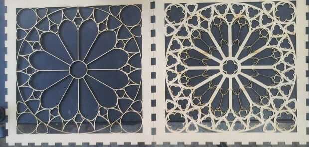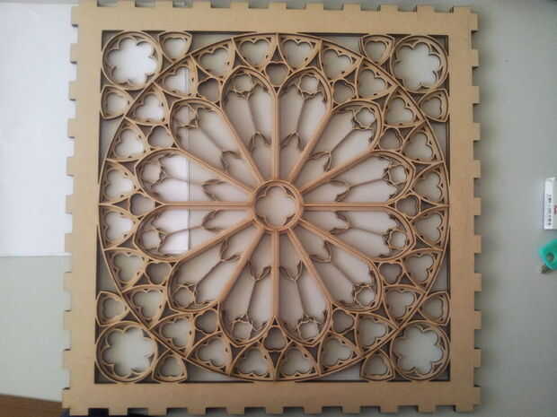 Tras haber derrotado a ley de Murphy, especie de reiniciarse con un flujo de aire reducido en el jet y MDF (es más fuerte que la madera contrachapada) usado en su lugar. Mientras continúa el corte del laser, hubo unos momentos de parada de corazón cuando que no estaban seguros si era capaz de tales estructuras intrincadas de corte del cortador del laser. Es por lo tanto probablemente prudente añadir una advertencia aquí. Así que aquí va: