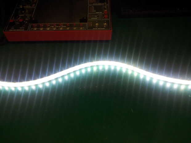 A continuación la hoja de acrílico translúcida azul fue unida con cinta de doble cara detrás de la cara frontal. Esta vez que yo voy por un constante resplandor, por lo que para la iluminación grabó en una tira de iluminación de LED dentro de la caja. Para energía, utilicé un adaptador de 12V que también asegurar con cinta de doble cara en el cuadro. Después de taladrar un pequeño agujero en el panel trasero para el cable (no la cortó este agujero en la fase de fabricación como todavía no está seguro acerca de la elección de la iluminación) y cerrando el cuadro, Voila! La construcción fue terminada.