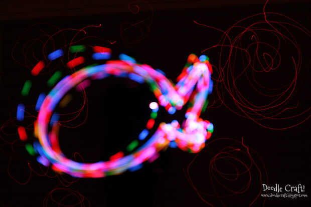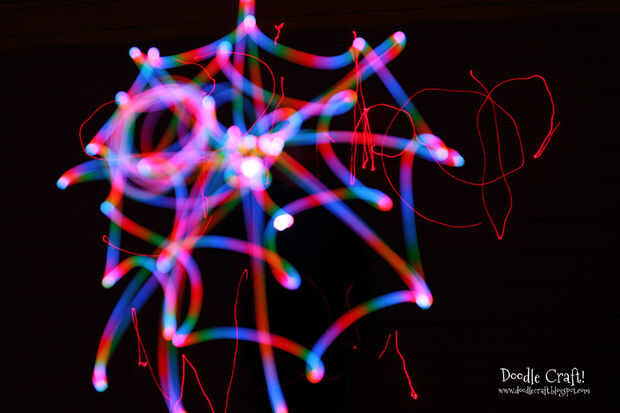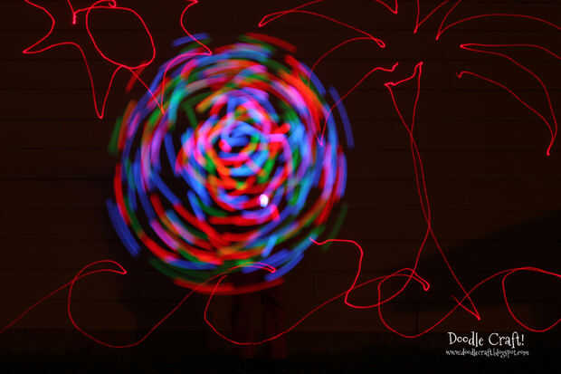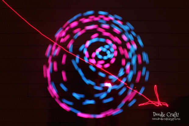 Una persona estaba parado con el color cambia la varita y la persona en el trípode celebrado el lápiz láser.