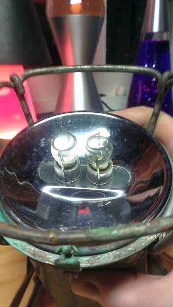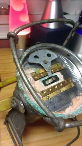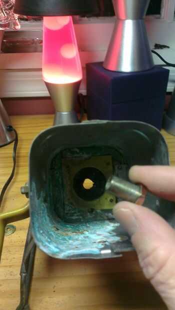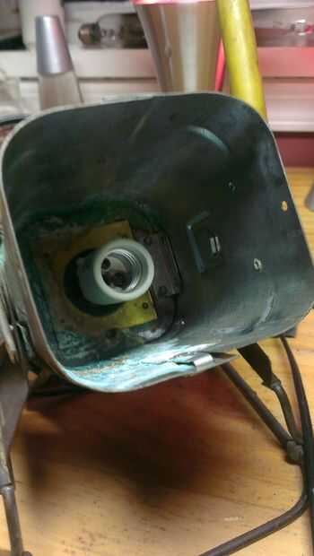 Mientras estaba esperando la lava caliente tomé el zócalo del bulbo de la lámpara de donantes. Puse la Lava en la base de otra luz para calentar mientras se hace este paso. Una vez tuve el cable y enchufe quitado la diversión comenzó a parte del montaje en la linterna. La linterna será boca abajo para que el alambre se va a través de la lente. Primero quita la lente clara de frente y luego desmontar los casquillos de bombilla. Esto tenía un interruptor muy aseado que le ha permitido pasar de dos focos diferentes en la linterna en caso de una bombilla se apagó.