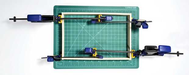 Use pegamento para madera para fijar el marco básico para el libro. Use una escuadra para asegurarse de que todo es verdad y de la abrazadera hasta que se seque. Retire cualquier extra de pegamento con un paño húmedo.