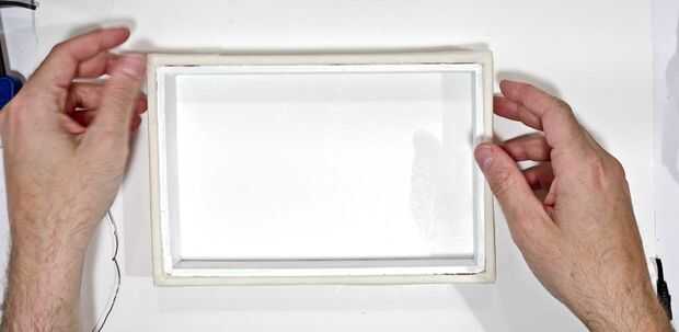 Use pegamento para madera y grapas para pegar en el lugar, dejando el espacio de 1/8 en la parte superior para sujetar el acrílico. Después de que el pegamento esté seco aplicar una capa o dos de pintura blanca en el interior para que sea una buena caja reflectante.