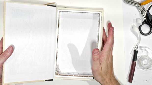 Fije el bastidor en el interior de la cubierta del libro. Me gusta con una resina de 2 partes para esta parte para una mayor durabilidad, pero es posible que pueda obtener con un buen pegamento blanco. La espalda y la columna vertebral se deben pegar al marco. Pinza y esperar a que el epoxy/pegamento curado seco.