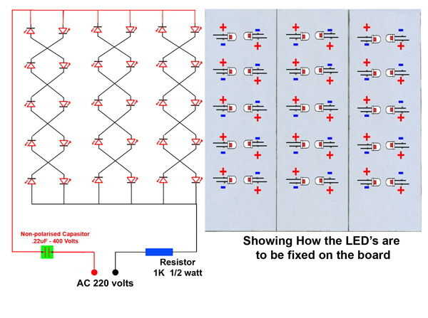 Para ello vea la colocación de los LED como se muestra en el diagrama
