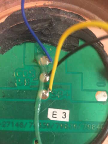 Coloque el panel solar hacia abajo para exponer la placa del circuito (generalmente se encuentra en la parte posterior). Identificar la ubicación de la + y -. Ya pueden ser conectados a estos puntos, pero si no, usted necesita hacer esa conexión. En este caso, el cable negro es - y el cable amarillo es +. El cable azul es en la salida de "tierra", pero eso no es importante para este tutorial.