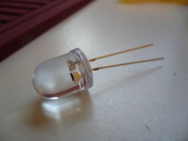 LED- utiliza un RGB de 10 mm auto bicicleta LED. 20-50 céntimos. Puede tomar un LED prácticamente cualquier dispositivo electrónico viejos o comprarlos en línea. Shack de radio vende normal (no RGB) LED de un brazo y una pierna.