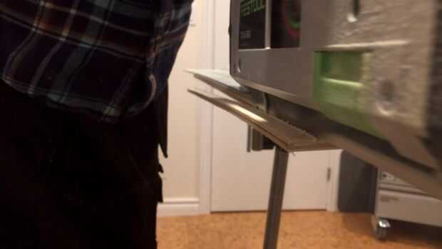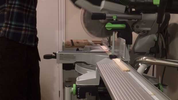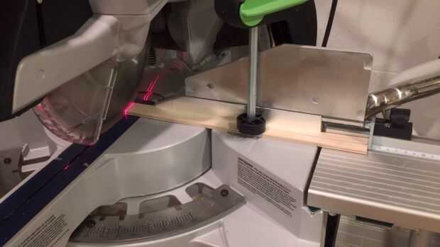 1/4" madera contrachapada se corta en tiras de 1/2" con una sierra circular y Sierra de corte a la longitud en la Mitra de la Cruz.