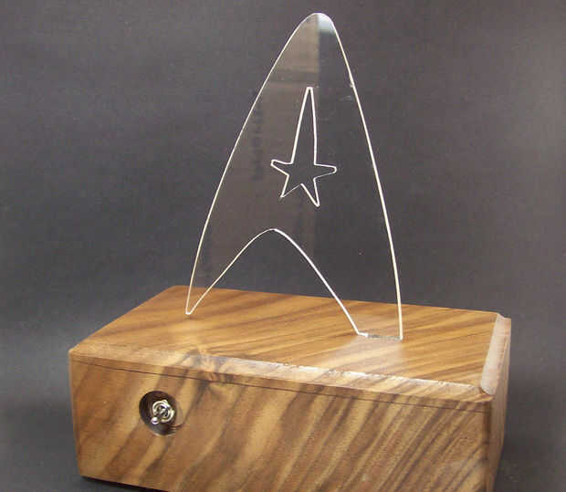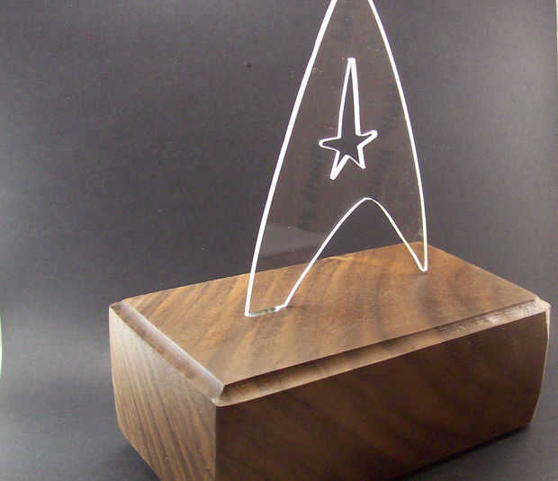 Hacer una luz LED Star Trek de nogal y acrílico. Añadir algunos electrónica y tienes una de un escritorio tipo luz, o luz de la noche! También es modular así que usted puede actualizar cada vez que le antoje!