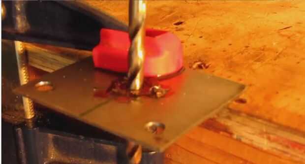 Por último, taladró un agujero de diámetro 1/4 de pulgada para el tornillo del trípode para pasar y adjuntar a la tuerca (cuadro 5). Un último Consejo Asegúrese de utilizar abundante aceite en la broca, si no la broca opacarán y puede frenar.