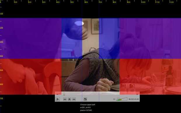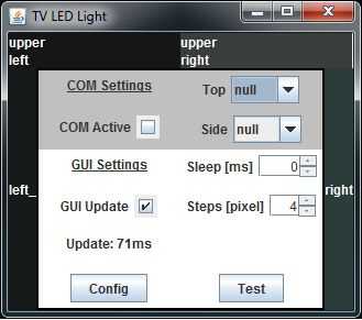 La segunda opción que ha añadido es un botón de configuración. Con esto iniciará una nueva ventana de pantalla completa. Le permite elegir las zonas a analizar. Puede ser realmente útil. Si una película es capturada en el ámbito del cine hay alsmost la mitad de mi pantalla es de color negro. No quiero este color negro para ser analizados. En la una mano esto ralentiza mi pc, ya que es un montón de cómputo solamente para agregar ceros. Por otra parte destruye el valor real medio añadir un montón de ceros pues dividir por todos los píxeles. La figura 2 muestra esa ventana.