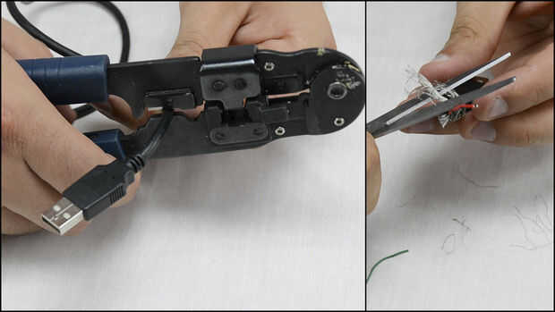 Necesitamos solamente rojo y un cable negro. Si hay 2 cables más, usted puede cortarlos. Se utilizan para los datos.
