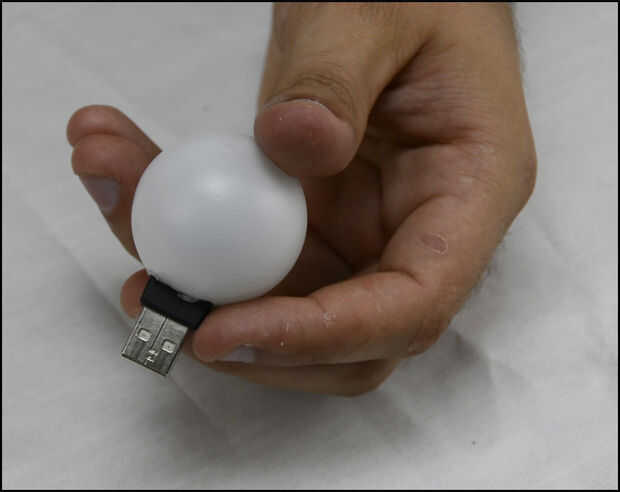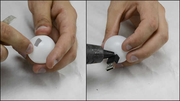 Me corte un orificio en una pelota de ping-pong y ponerlo en el conector USB.
