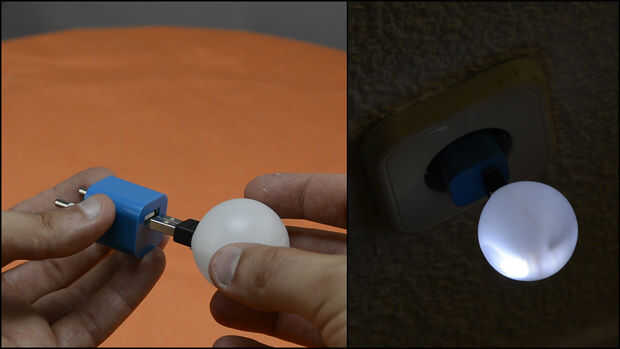 Dobló el LED, así tomaría menos espacio, entonces pegué al enchufe.