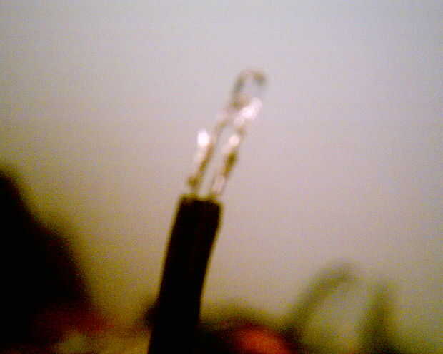 Ahora, vamos a utilizar el cable y el LED. La soldadura de dos piezas de alambre a los dos cables que salen de lo LED. El cable del LED que está conectado a la pieza de metal más grande en su interior es el cable negativo. Recuerde que uno es. Una vez que el LED es soldado, pusieron cerca el botón en el panel y vuelva a colocar el panel, asegurándose que el LED permanece en su lugar. Encamine los alambres de la manera más eficiente para que pueden llegar a (o casi llegar) el conector de alimentación en la parte posterior de la unidad de CD-ROM.