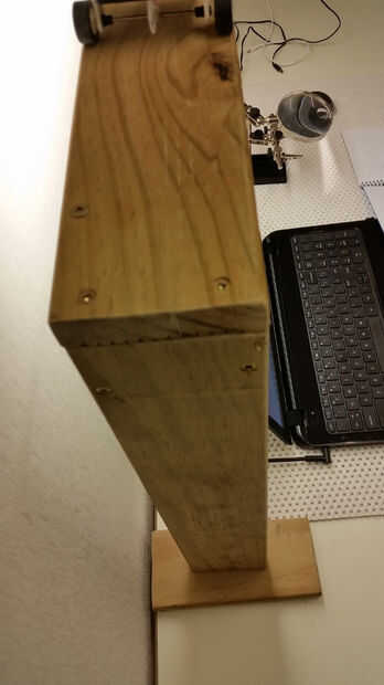 Agregue un cuadro de potencia al lado izquierdo o derecho de la unidad siguiendo las instrucciones de montaje que vienen con la caja de alimentación. En mi caso solo fue poner dos tornillos para madera en la pierna del lado de mano derecha y corredera en dos agujeros en la caja de alimentación.