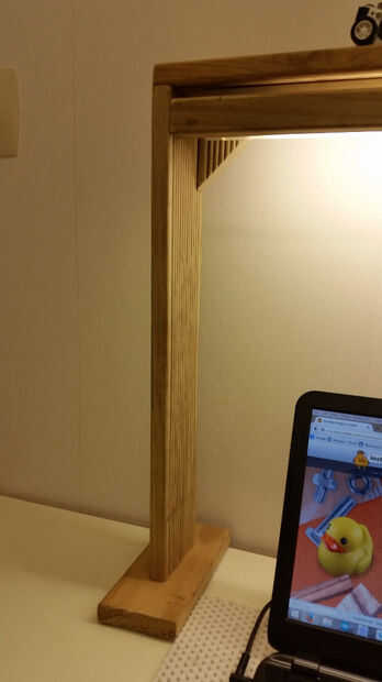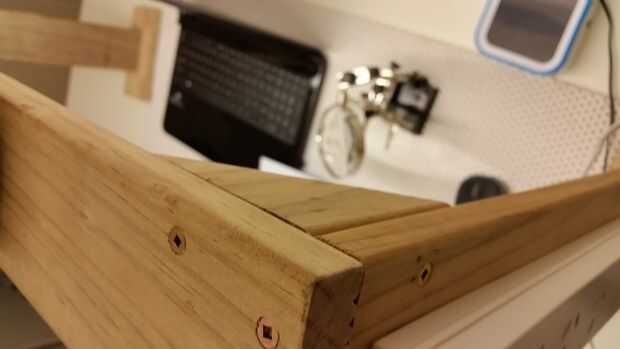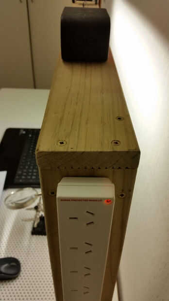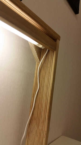 Centro de la luminaria en la parte superior y asegurar que el cable de alimentación no se limita antes de atornillar en la madera. Afronté el interruptor en la parte posterior para que pueda llegar a todo y apagar el Banco de luz fácilmente.