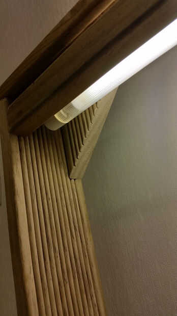 Colocar al protector resplandor al frente de la unidad para que oscurece completamente la luz de los ojos. En mi caso hubo una separación de 1cm entre la parte inferior de la parte superior y el protector de deslumbramiento.