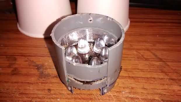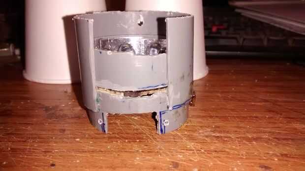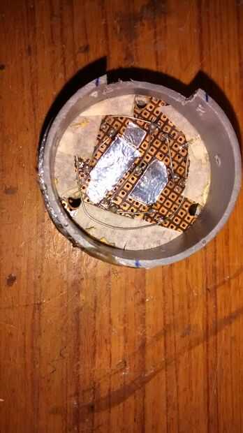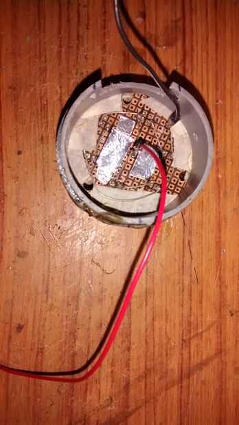 montar el tubo de piezas el PVC más pequeño, luego el PCB entonces el segundo tubo de PVC y sujetarlos con la pieza grande con la ranura