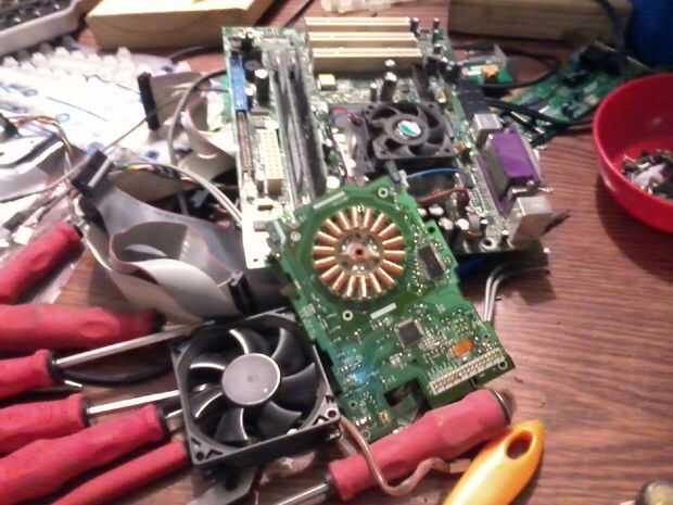 Obtainium - en mi caso he utilizado un pc viejo, bandas de metal, un viejo soporte de micrófono, una luz de la noche y un cable de poder salvarse.