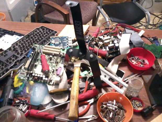 varias herramientas de mano ordinarias (destornilladores, martillos, alicates, etc.)