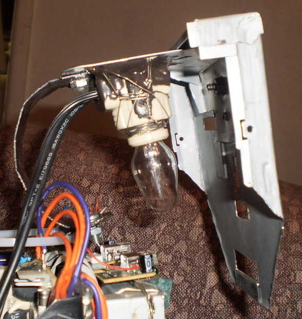 Arte de alambré y jb weld pegada la luz en el marco de la noche. Yo jb weld aquí porque puede soportar mucho más calor que el pegamento caliente - y la bombilla es sólo milímetros de distancia.