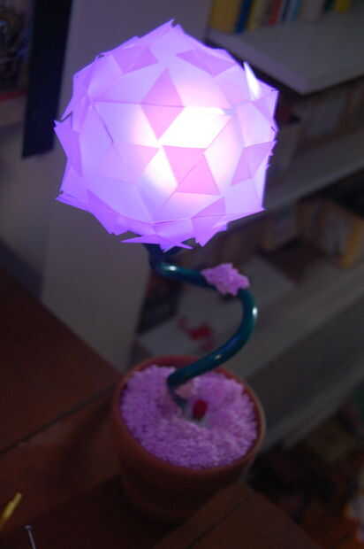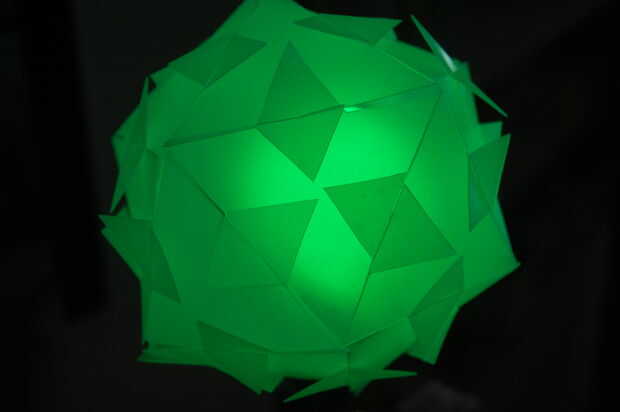 Hay muchas variaciones a este tema del poliedro. Dan hizo un buen instructivo sobre el tema. Hacer mío he modificado un modelo simple que encontré aquí que se basa en deslizarse 20 triángulos juntos. Cambiando la forma de una estrella de David evitaba tener agujeros en mi sombra.