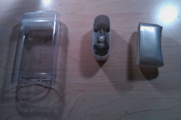 Desarmar y lavar cada parte para retirar la basura desde el interior. Para quitar la pieza de blanco desde el interior, hice un agujero en la parte superior del cuerpo de desodorantes por empujar un pensamiento de soldador y empujándola con un palo largo delgado. No serás tan lo necesidad tiro a la basura.