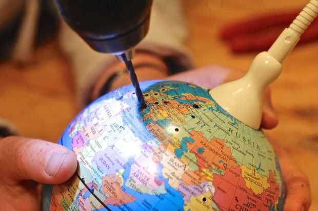 Perforar todos los agujeros antes de colocar cualquier acrílico así será más fácil descansar su globo sobre una superficie dura como su tabla mientras que usted está perforación.
