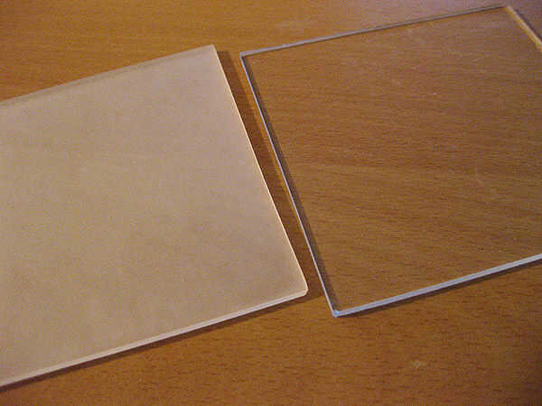 Probablemente puede obtener hojas de acrílico que tienen una mirada helada. Pero no pude encontrarlos aquí. Encontrado 1 tienda, pero cobraban dedicar más a continuación, el agua borre uno. Desde el papel de lija no costo que mucho fui por el agua claro uno :)