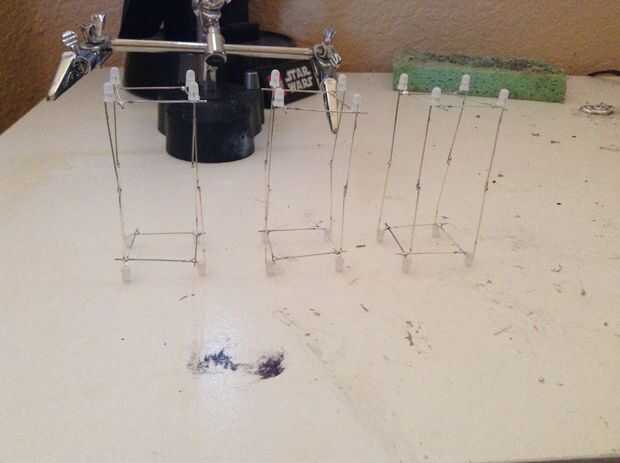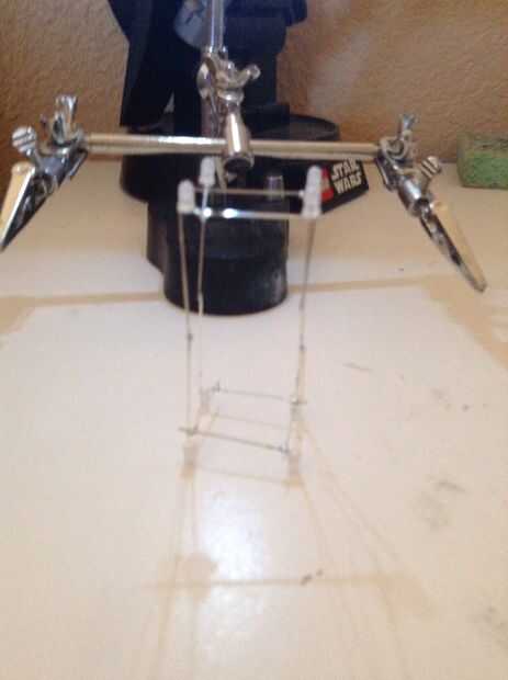 Una vez que se sueldan las plazas, conectar dos Cuadrados, por un extremo como se puede ver en la foto. Uso manos para ayudarle a manten a soldar hasta que usted ha hecho todas las plazas.