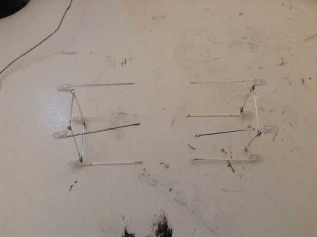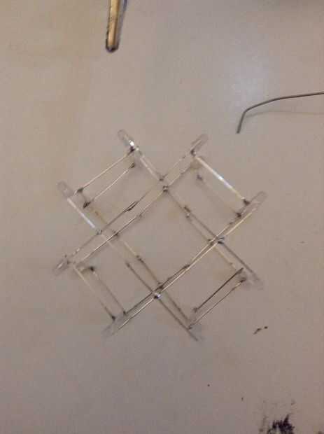 Pega el cubo rectangular al otro cubo rectangular como se puede ver en la foto. Que forma una X. Entonces ad otros cubo rectangular en el medio, si no cabe desoldar el último cubo y hacer de su. Asegúrese de que los dos que Desoldar el fósforo para arriba.