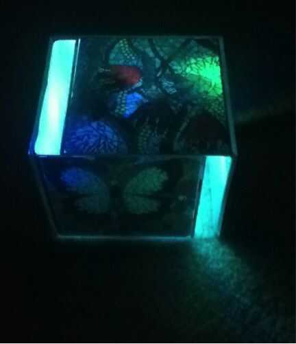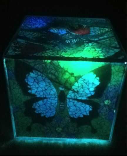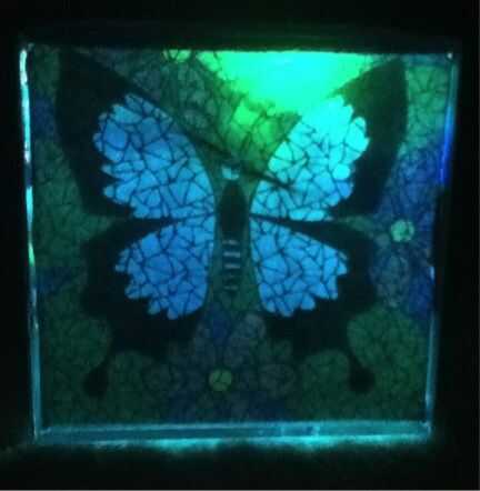 Hice una nocturna de la mariposa. Esta luz nocturna tiene un hermoso color aqua a él. Emite luz, pero lo suficiente para que no es demasiado oscuro en la habitación, tampoco hay demasiada luz, que te moleste en tu sueño.