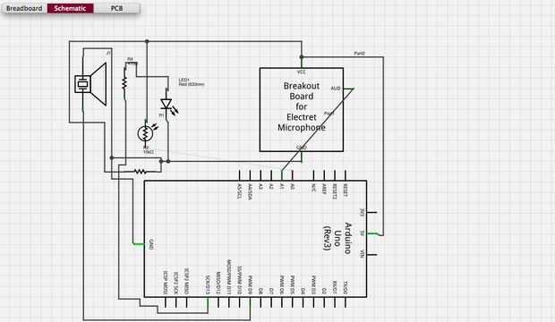 Micrófono: VCC va a 5V, GND sale a tierra, va al pin analógico 1