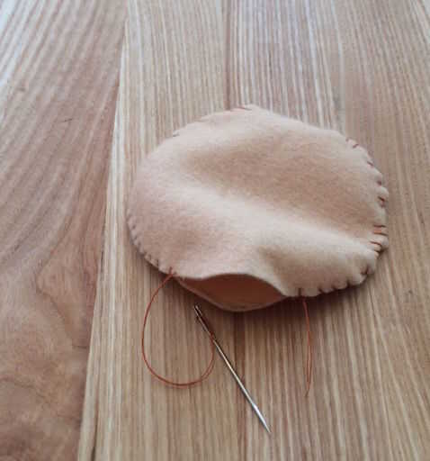 Corta dos círculos grandes de fieltro, uno más grande que el otro. Corte un pequeño agujero cerca del borde del círculo más pequeño y uno en medio de la. Puntada del azote los bordes, dejando un espacio de 1 pulgada. Rellenar los círculos (no hay ninguna tal cosa como overstuffing aquí) y coser hasta la brecha. Antes de cerrar la puntada, enrolle el hilo alrededor de la 'envoltura' un par de veces. Asegúrese de que el círculo más grande es hacia arriba, encima de uno más pequeño.