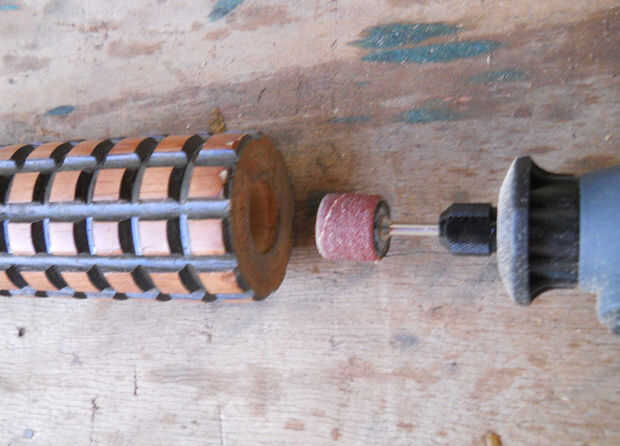 El agujero en el centro de la espiga era un poco demasiado apretado a la cabeza de la lámpara solar, por lo que lijado un poco en el interior los bordes con una herramienta giratoria.