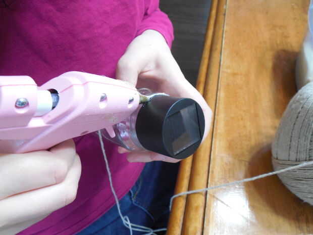 Colocar unas cuerdas o cintas de tu elección que usar caliente pegamento (y paciencia... y callos).