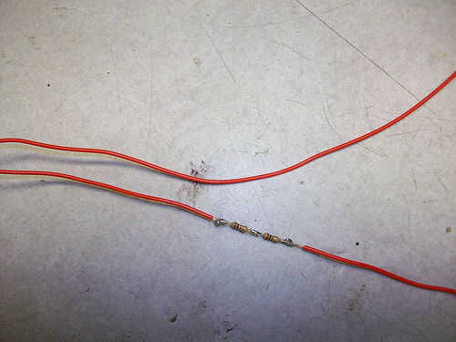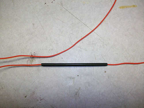 Aquí vas a soldar 2 cables al interruptor, uno en cada cable. Luego en uno de los cables, conecte las resistencias de ohm 2 100. 2 LEDs, necesitas aproximadamente 180ohms de resistencia. He utilizado 200 porque tenía unos resistores de 100 ohm poniendo alrededor. Usted puede utilizar siempre más resistencia pero nunca use menos, de lo contrario terminarás soplar las bombillas LED. Remató con la adición de que algunos encogen el abrigo para cubrir las conexiones y para protegerlo.