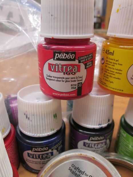pinceles y pintura de cristal.
