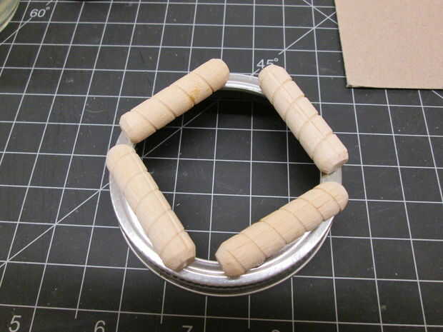 pegar pequeñas espigas de madera alrededor de la base para levantar un poco y dejar espacio para el cable eléctrico a la salida. Mostré a pequeños discos de madera en mi lista pero he encontrado los tacos funcionados mejor.