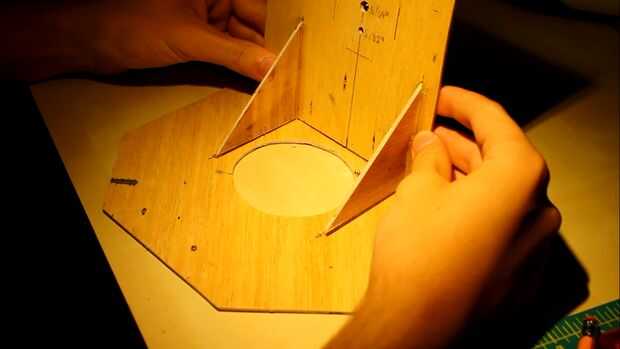 Comencé el proceso de pegado uniendo los triángulos de 1cm de los bordes de la lente en la base. Luego pegué el octágono en la base utilizando los triángulos como apoyo.