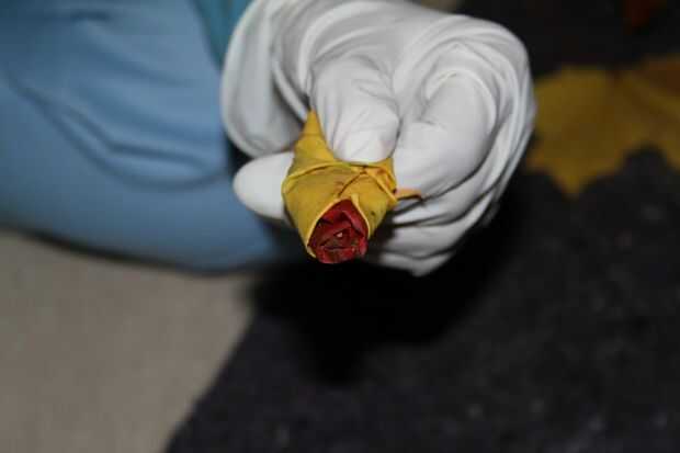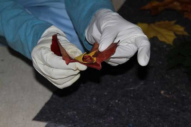 Elegir la hoja de tamaño medio deseado que desee en el centro de la flor, doblar hacia la derecha hacia arriba como se muestra en la imagen uno. Imagen dos y tres se muestra que es doblado por todos los lados. En la cuarta foto, verá que he enrollado la hoja doblada para hacer un pequeño brote. Siguiendo el resto de las fotos verás que sale doblado y agregar a la yema.