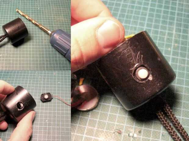 Una vez es pegamento taladrado y lijado el clicker en su lugar.