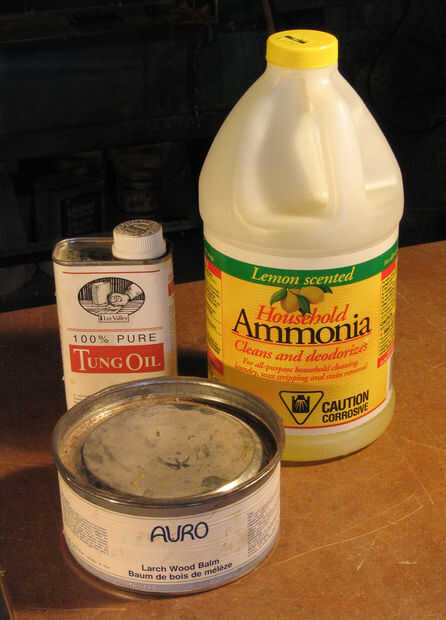El proceso de acabado utiliza el amoníaco como un tinte de madera y aceite de tung para sellar la madera y añadir un poco más de color y profundidad al grano.