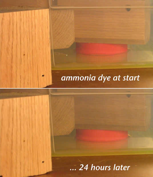 Después de quitar el trabajo del contenedor teñido, esperar 24 horas para que los vapores absorbidos escapar de la madera.