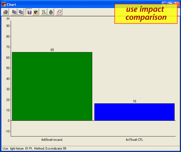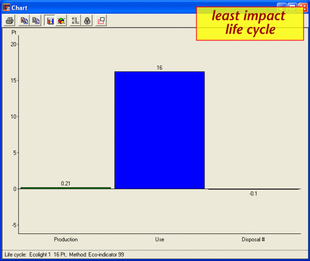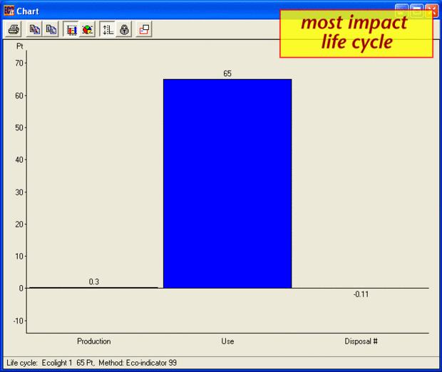 El software ECO-it se basa en el método Eco-indicator 99 peso los diversos impactos. Se reduce cada material y proceso a un solo número.